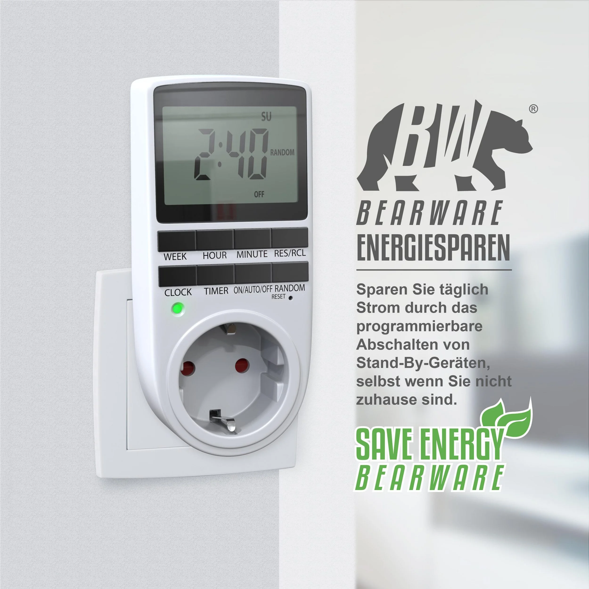 10 Programme • 12/24h-Modus • Zufallsfunktion • Energiesparend
