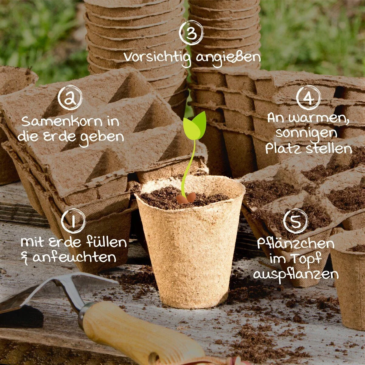 | Anwendung | Mit Anzuchterde füllen, anfeuchten, Samen einsetzen & warm, hell platzieren. |